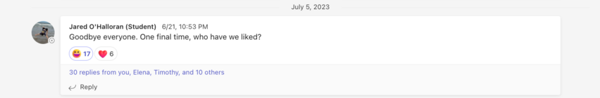 "Goodbye everyone. One final time, who have we liked?" — Jared O'Halloran, June 21st, 2023, at 2:53:44PM CST